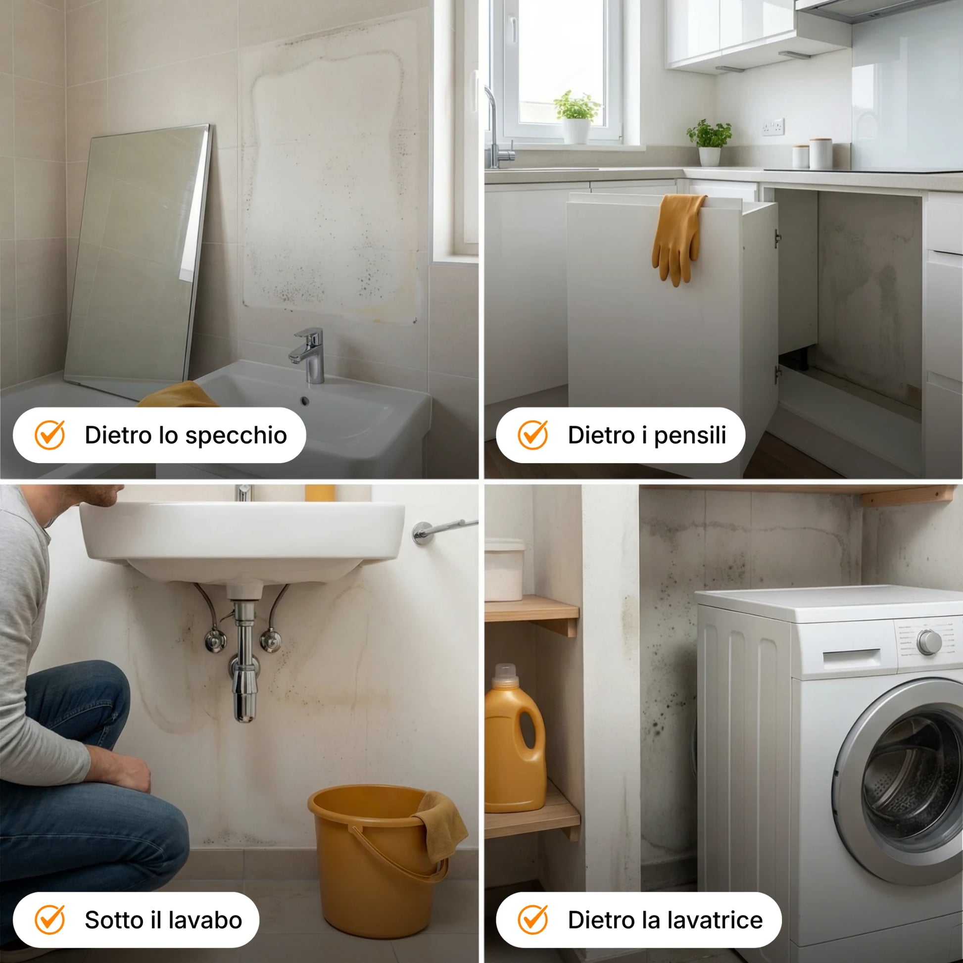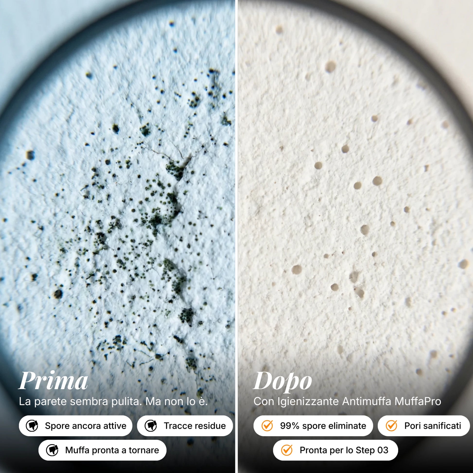 1. Preparazione: Dopo il trattamento con Spray Rimuovi Muffa (Step 01), attendere 2-3 ore.