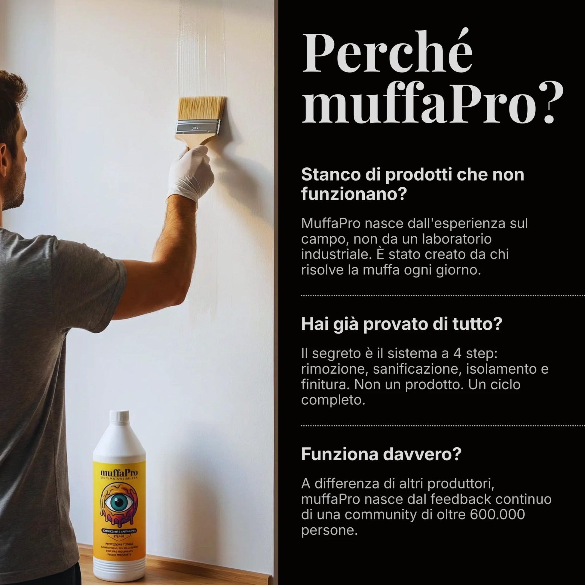 2. Applicazione: Applicare con pennello o diffusore spray, estendendo il trattamento 20-30 cm oltre l'area visibile della muffa. Per superfici molto infestate, ripetere dopo 24 ore.
