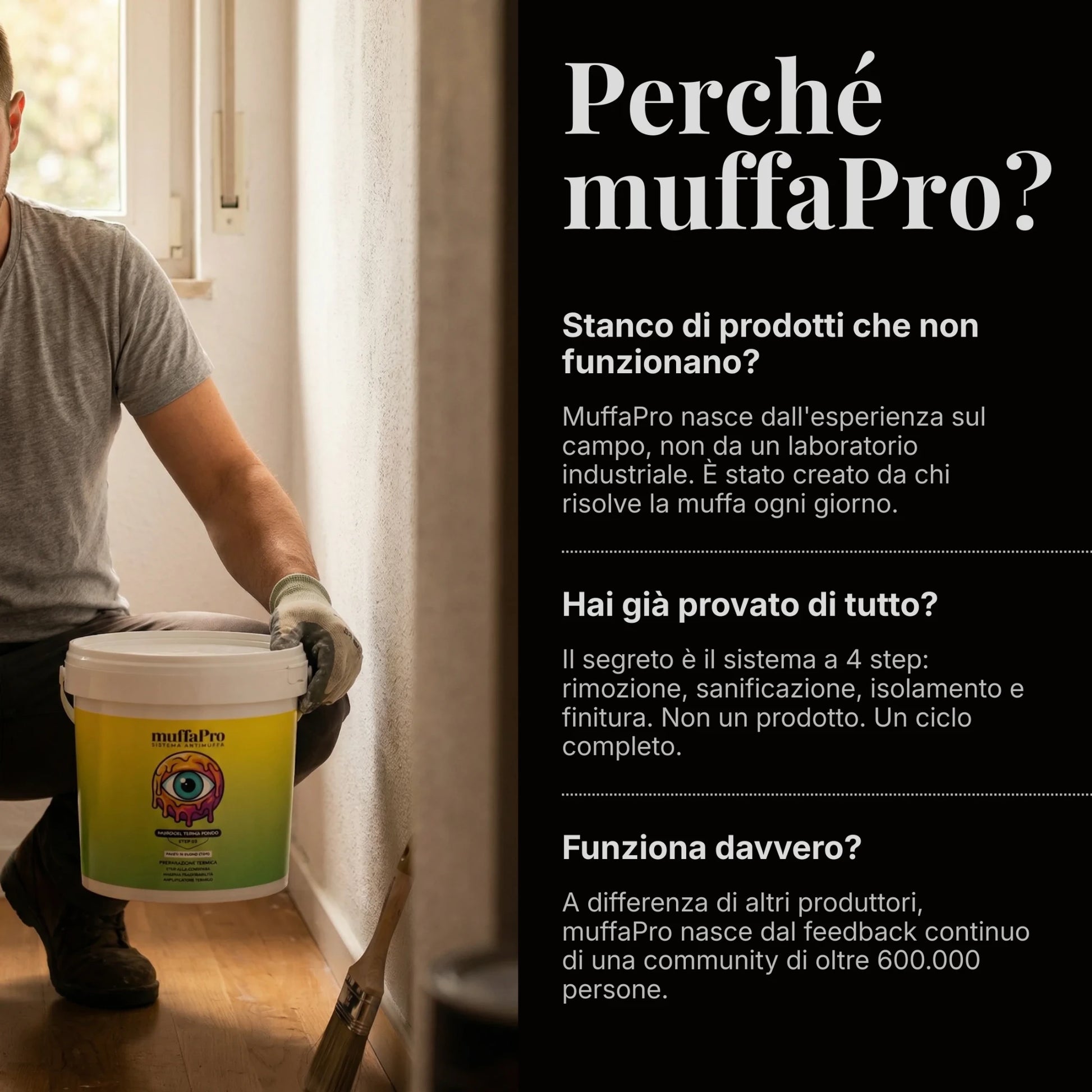 Per pareti nuove o rovinate, utilizzare Nanoconsolidante Biocida MuffaPro.